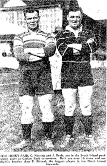 - ↑ "Selecting Dominion Team/Two Fine Trial Games/North Island Wins Keen Game/Backs Check South Forwards". The New Zealand Herald. Vol. LXIII, no. 19371. 5 July 1926. p. 13. Retrieved 18 September 2019 – via Papers Past.