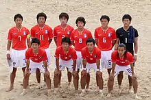 The South Korea national beach soccer team represented South Korea in international beach soccer and was governed by the Korea Football Association. It is not currently being managed and was officially organized only once when the first Asian Beach Games was held in 2008.[3] Besides official record, South Korea participated in unofficial Intercontinental Cup in 1995 and 1996.[4][5]