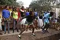 Lobé, only a few kilometres south of Kribi, is another popular spot with tourists due to its even more isolated beaches and the picturesque Lobé Falls (chutes de Lobé), found where the Lobé River empties into the Atlantic. Local artists and vendors frequent the area around the falls, as do drivers offering to take passengers to Kribi or 65 km further south to see the Lala Pygmy village Elogbatindi, .