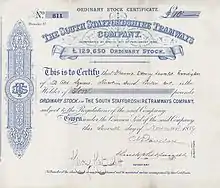 Stock of the South Staffordshire Tramways Company from 7 November 1889