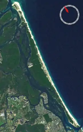 South Stradbroke Island (Indigenous: Minjerribah[2]), colloquially South Straddie,[3] is an island that lies within Moreton Bay in the Australian state of Queensland, south of Brisbane and forms the northern end of Gold Coast. The island is a locality within the City of Gold Coast.[4] In the 2021 census, South Stradbroke had a population of 142 people.[5][1]