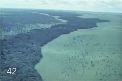 Central Africa is familiar with repeated climatic variation that have caused rain forest and savanna expansion and deflation in consideration of the late Pleistocene tectonics defined the Congo Basin.[4] Important climatic shifts have occurred more than 20 times in less than 10 million years.[5] Plants and animals adapt, change, and go extinct with any climatic oscillation. Widespread and immensely resilient organisms that lived through in islands of habitat and accustomed to spatial fluidity were favored.[5] During dry periods, savanna communities breached far into the Congo Basin. The relatively moist riparian forests become detached from one another and compose forest island localities in the savanna matrix.[5][6][7][8]