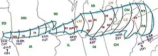 The Southern Great Lakes Derecho of 1991 is the derecho event that occurred on July 7 and 8, 1991. It lasted 17 hours and raced from South Dakota through southern Michigan before dying out over Western Pennsylvania.
