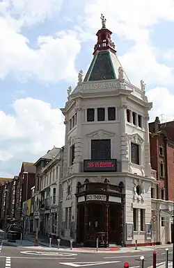 Southsea continued to grow eastwards in the early 20th century, extending to the area of Eastney. During this time significant local public buildings were constructed including the Queens Hotel, in the Edwardian Baroque style built in 1903 and the Kings Theatre built in 1907. The onset of the First World War saw an increase in fortifications on the seafront. Parades were held on Southsea Common. Southsea continued to thrive as a resort destination and a suburb of Portsmouth in the inter-war years, with many visitors in summer. At that time parts of the Common were converted into ornamental gardens and the Ladies' Mile was set out in 1925.[27] However the Second World War had an immense impact on the urban and social fabric of the area. Huge areas of Southsea were destroyed by bombing during The Blitz. Although some of Victorian Southsea escaped the bombing, areas such as the Kings Road and Elm Grove were extensively damaged and the Palmerston Road shopping areas were completely destroyed. The beachfront, piers and promenades were closed for the duration of the war.[28] Following the end of the war, in 1945 Southsea and the rest of Portsmouth embarked on a massive clearance and rebuilding scheme. Many areas of destroyed, damaged and intact low-income housing were cleared to make way for new building schemes. The Kings Road Estate and Roslyn House, among others, were developed between 1945 and the 1970s. Palmerston Road shopping area was developed in the 1950s and still stands today.[29] Although visitor numbers to the resort area never recovered, Southsea continued to develop throughout the 20th century and today remains a mixed residential area and leisure destination.[30]