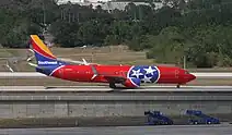 N922WN, a Boeing 737-700, was repainted into the standard "Heart" livery in April 2021 due to paint issues with the "Tennessee One" livery.[54] N8620H, a Boeing 737-800, was painted in the "Tennessee One" livery in September 2022.[55] |