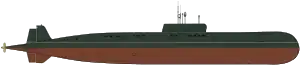 These decisions produced a design that had an underwater speed of 38 knots and was capable of carrying 10–12 missile launchers forward of the sail, but was larger than the specified displacement if fitted with two propeller shafts. The committee considered using a single shaft, but ultimately rejected it, preferring the redundancy of two reactors. It did delete the auxiliary diesel generator that earlier nuclear-powered submarines had been equipped with to compensate for using two shafts when it accepted the sketch design and authorized preliminary design work in February 1960. The final design was approved three months later.[5] To reduce the technical risk of many of the advanced components chosen, the navy modified five existing submarines to test various systems such as the P-70 Ametist (NATO reporting name: SS-N-7 Starbright), GRAU designation: 4K66; Russian: П-70 «Аметист» 'Amethyst') missiles, sonars and other electronics.[5][7]
