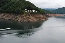 The Soyang Dam, also referred to as the Soyanggang Dam, is an embankment dam on the Soyang River, 10 km (6 mi) northeast of Chuncheon in Gangwon-do Province, South Korea. The purpose of the dam is flood control, water supply and hydroelectric power generation. Construction on the dam began in 1967 and was complete in 1973. The 123 m (404 ft) tall dam withholds a reservoir of 2,900,000,000 m3 (2,351,068 acre⋅ft) and supplies water to a 200 MW power station.[2][3]