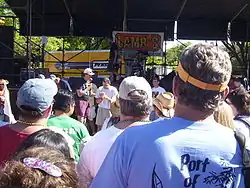 Officially called the Pandemonious Potted Pork Festival, SPAMARAMA was held on a weekend close to April Fool's Day at Auditorium Shores or in Waterloo Park and drew thousands of people to "one of the wackiest festivals in America".[4] The festival was held for several years at the original Soap Creek Saloon, before moving with the saloon to a couple of other locations. Later it was held at venues such as Scholz Garten, La Zona Rosa, Auditorium Shores, East Sixth Street, the Cedar Door and Waterloo Park (2006, 2007).[2] The event drew thousands to Auditorium Shores (now Vic Mathias Shores) with Spam cook-offs and the Spamalympics. It peaked in 1998 with more than 14,000 people attending. That same year Arnsberger published a Spamarama cookbook.