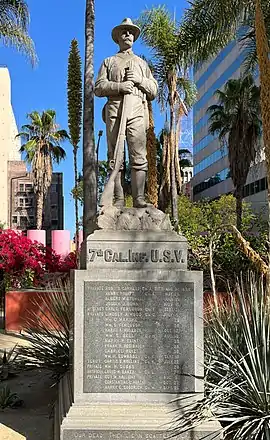 - ↑ "S. M. Goddard, Spanish-American War memorial (7th Regiment Monument), A Survey of Important Sculptures in Los Angeles County". Public Art in LA. Archived from the original on 2020-09-26. Retrieved 2022-09-16.