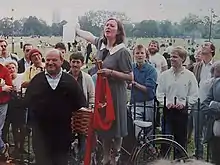 - ↑ Wocker: Wer andern eine Rede hält 1981, pp. 36-45, with photos. Also mentioned in Heathcote Williams, The Speakers, 1964, pp. 28–32.