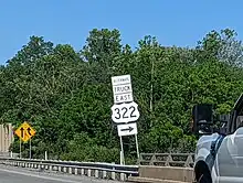 U.S. Route 322 Alternate Truck (US 322 Alt. Truck) is a truck route of US 322 around a weight-restricted bridge over the East Branch Brandywine Creek in Downingtown, Pennsylvania, on which trucks over 36 tons and combination loads over 40 tons are prohibited. The route follows the US 30 freeway, PA 113, and US 30 Bus./US 322 Truck. US 322 Alt. Truck runs concurrent with US 30 Bus. Alt. Truck along US 30 and PA 113.[1][2]