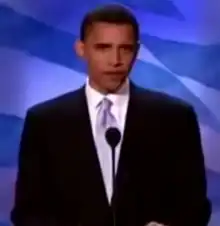 - 1 2 Hirschfield Davis, Julie; Shear, Michael (July 27, 2016). "Obama, at Convention, Lays Out Stakes for a Divided Nation". New York Times. Retrieved July 28, 2016.