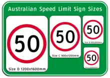 Speed limits in Australia range from 5 km/h (3.1 mph) shared zones to 130 km/h (81 mph). Speed limit signage is in km/h since metrication on 1 July 1974. All speed limits (with the sole exception of the South Australian school and roadworks zones which are signposted at 25 km/h) are multiples of 10 km/h – the last digit in all speed signs is zero.[1] Speed limits are set by state and territory legislation albeit with co-ordination and discussion between governments.