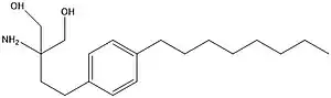 - ↑ Adachi, Kunitomo; Kohara, Toshiyuki; Nakao, Noriyoshi; Arita, Masafumi; Chiba, Kenji; Mishina, Tadashi; Sasaki, Shigeo; Fujita, Tetsuro (April 1995). "Design, synthesis, and structure-activity relationships of 2-substituted-2-amino-1,3-propanediols: Discovery of a novel immunosuppressant, FTY720". Bioorganic & Medicinal Chemistry Letters. 5 (8): 853–856. doi:10.1016/0960-894X(95)00127-F.