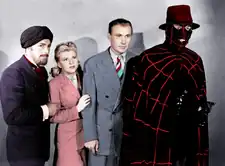 Both serials have The Spider's black cape and head mask over-printed with a white spider's web pattern and then matched with his usual plain black fedora. This addition gave the silver screen Spider an appearance more like that of a superhero,[2] like other pulp and comics heroes being adapted for the era's movie serials.