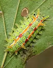 The spiny oak slug (Euclea delphinii) is the larval form (caterpillar) of a moth in the family Limacodidae.