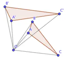 Spiral similarity is a plane transformation in mathematics composed of a rotation and a dilation.[1] It is used widely in Euclidean geometry to facilitate the proofs of many theorems and other results in geometry, especially in mathematical competitions and Olympiads. Though the origin of this idea is not known, it was documented in 1967 by Coxeter in his book Geometry Revisited.[2] and 1969 - using the term "dilative rotation" - in his book Introduction to Geometry.[3]