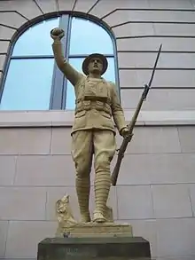 The Spirit of the American Doughboy is a pressed copper sculpture by E. M. Viquesney, designed to honor the veterans and casualties of World War I. Mass-produced during the 1920s and 1930s for communities throughout the United States, the statue's design was the most popular of its kind, spawning a wave of collectible miniatures and related memorabilia as well as numerous copies by other artists. Its title is often shortened to The Doughboy.
