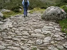 Since the opening of the San Bernardino road tunnel in 1967, the pass has lost its former importance; it is not kept open in winter. Thanks to its lack of importance, it is now a quiet pass where essential portions of the historical roads have survived allowing a good historical review for hikers on the Via Spluga.[2]