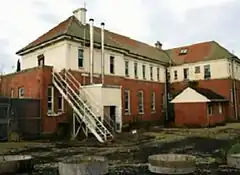 Kingseat Hospital was in operation from 1932.[8] In 1939, the Public Works Department and Fletcher Construction Company, Ltd. agreed on the construction of a two-storey nurses home at Kingseat Hospital, with the government to provide the steel for the building.[9] The hospital grew throughout the mid-late 1930s and 1940s to such an extent that by the beginning of 1947, there were over eight hundred patients.[7] During the 1950s, Dr. Henry Bennett (the man whom the mental health wing at Waikato Hospital is named after) was a senior medical officer of health at Kingseat Hospital.[10] From 1964, nursing staff at Kingseat were given name tags to wear on their uniforms.[7] In 1968, certain nurses at Kingseat Hospital went on strike, which forced the administration to invite unemployed people and volunteers to assist within the hospital grounds with domestic chores.[8] In 1973, a therapeutic pool was opened by the then-Mayoress of Auckland, Mrs. Barbara Goodman, four years before the main swimming pool was added to the hospital in 1977. The site celebrated its 50th anniversary jubilee in 1982.[7] During the 1970s and 1980s, there were many places attached to psychiatric hospitals in New Zealand where alcoholics were treated for their drinking addictions and Villas 4 and 11 at Kingseat Hospital served this purpose.[11] In later years, the hospital accepted voluntary patients.[12] In 1996, South Auckland Health sold Kingseat Hospital after government decisions to replace ongoing hospitalisation of mentally ill patients with community care and rehabilitation units. This led to the eventual closure of Kingseat Hospital in July 1999, when the final patients were re-located off the complex to a mental health unit in Otara.[13]
