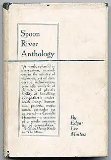 Spoon River Anthology (1915) is a collection of short free verse poems by Edgar Lee Masters. The poems collectively narrate the epitaphs of the residents of Spoon River, a fictional small town named after the Spoon River, which ran near Masters's home town of Lewistown, Illinois. The aim of the poems is to demystify rural and small town American life. The collection includes 212 separate characters, in all providing 244 accounts of their lives, losses, and manners of death. Many of the poems contain cross-references that create a candid tapestry of the community. The poems originally were published in 1914 in the St. Louis, Missouri, literary journal Reedy's Mirror, under the pseudonym Webster Ford.[1]