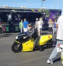 The most basic racing class is the bracket racing class, Street ET. Each motorcycle in this class must have a street tire and feature no wheelie bars. Some of these bikes have minor modifications such as having been lowered or featuring an air shifter to change gears. Each rider submits a "dial in" time before the race (the predicted time he/she will run), and the racer running the closest to their dial in and getting to the finish line first without running under their dial in wins. Reaction time is important, especially the closer a racer gets to the finals. Bracket racing is a relatively inexpensive and easy way to get into drag racing a sportbike. "This is a great class to come start in and once was the stomping grounds for many racing of the “Pro” riders today" (Series Information).