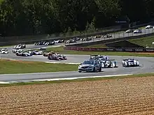 A group of modern Le Mans Prototypes competing in the American Le Mans Series