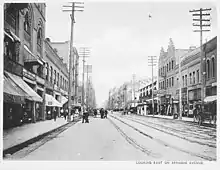 Sprague Avenue was named after Northern Pacific Railroad executive and former Civil War General John W. Sprague by city founder, James N. Glover.[1] Glover hoped naming a street in Sprague's honor would sway him to route the transcontinental railway his company was constructing through the budding town.[2] Sprague Avenue became part of a transcontinental highway that linked Chicago and the Twin Cities in the Midwest to Seattle. In the 1920s, Sprague Avenue was the longest continuous stretch of road in the city and once billed as the "most traveled street in Spokane", connecting downtown Spokane to the suburban farming communities in the Spokane Valley, the Spokesman-Review reported in 1926 that "thousands of tourists traverse it during the summer season. Hundreds of suburbanites and Valley farmers use it daily."[3]