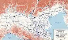 The spring 1945 offensive in Italy, codenamed Operation Grapeshot, was the final Allied attack during the Italian Campaign in the final stages of the Second World War.[8] The attack in the Lombard Plain by the 15th Allied Army Group started on April 6, 1945 and ended on May 2 with the surrender of German forces in Italy.