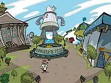 Spy Fox 2: "Some Assembly Required" is an adventure game developed and published by Humongous Entertainment, part of their "Junior Adventure" line and the second entry in the Spy Fox series of games. The game follows the heroic Spy Fox as he races to stop a giant robot from destroying the World's Fair. The game was released for computers in September 1999.
