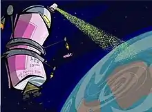 When Spy Fox gives Pushpin all the vital ingredients, the latter finishes the congeal pill and gives it to Fox. At the same time, Professor Quack gives Fox a "Swiss Spy Knife" gadget, which contains wire cutters that are able to cut through solid steel. Spy Fox enters the spray can, but Poodles stops Fox right before the pill can touch the aerosol and traps him in a steel net. After using the wire cutters that Quack gave him, Fox is able to free himself, take back the congeal pill (without Poodles noticing) and successfully throw the pill into the aerosol. The can becomes unstable but gives just enough time for Poodles and Fox to escape before it explodes. Poodles then retreats to her moonbase; if Spy Fox follows her, a bonus ending will be unlocked.