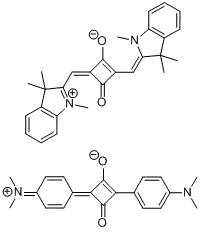 Squarylium dyes have poor solubility in most solvents, except for dichloromethane and a few others. Their absorption peaks at ~630 nm and luminescence at ~650 nm.[4] The luminescence is photochemically stable [5] and its quantum yield is ~0.65.[6]