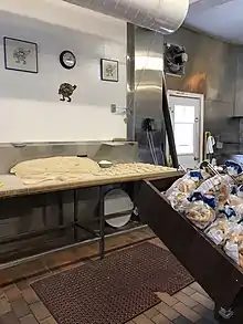 St-Viateur Bagel was established on May 21, 1957 by Myer Lewkowicz, a Holocaust survivor who moved to Canada in 1953.[1] Lewkowicz had grown up poor in a shtetl near Kraków, Poland. Lewkowicz spoke of his experience in the Holocaust influencing the opening the shop by stating "At Buchenwald, all I dreamt of was a piece of bread".[1] He learned the trade as an employee of Montreal Bagel Bakery, another local bagel shop owned by Hyman Seligman.[2] The shop is named after the street it is located on, St-Viateur Street, and is one of the longest-running bagel shops in Montreal.[3] In 1985 St-Viateur Bagel suffered an extensive fire, but the wood stove remained entirely intact.[4]