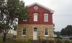 St. Francois County Jail and Sheriff's Residence is a historic jail and sheriff's residence located in Farmington, St. Francois County, Missouri. It was built in 1870–1871, and is a two-story, three bay, Greek Revival-style brick and limestone building. It has a front gable roof and centered arched front doorway. The building was enlarged slightly around 1909. By 1996, it was one of the oldest operating jails in Missouri,[2] but it was retired in September of that year when the jail moved to a newer and larger facility.[3] The building now serves as a low-cost inn for people traveling along the TransAmerica Bicycle Trail.[4]