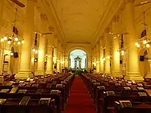 The church was opened in 1815. It is stated that the church was completed by the people themselves with the aid of a lottery fund.[1] It cost 41,709 pagodas and with the furniture, the organ and the architect's commission increasing the cost to 57,225 pagodas. 1 Pagoda was equivalent to 3.50 Indian rupees.