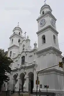 Saint Ignatius' Church (Spanish: Iglesia de San Ignacio) is a Roman Catholic church situated at the Illuminated Block, in Buenos Aires's neighbourhood of Montserrat. The first building, which was made of adobe, was built by the Society of Jesus in 1675. The southern tower and the present facade were built in 1686, and the rest of the Church construction started in 1712. Today's church was completed in 1722 and consecrated in 1734.[1]