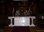 St. James' Episcopal Church is a "broad church" parish, offering a balance between the high church and low church styles of churchmanship. In worship and theology, this stresses and embraces the breadth of Episcopal doctrine and practice. The original marble altar, raised up several tiers, is used to celebrate some Eucharists, while a simpler wooden altar placed at floor level near the congregation is used for others. Worship is from the 1979 Book of Common Prayer, primarily using Rite II, written in modern language. All four Eucharistic Prayers are used throughout the year. Rite I, written in very traditional language, is used on occasion.