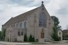 St. James' Episcopal Church, named for James the Greater, is a historic Episcopal church located in Manitowoc, Wisconsin. The only Episcopal church in Manitowoc County, St. James' is a "broad church" parish in the Diocese of Fond du Lac. It is the oldest continually operating congregation in Manitowoc County,[1] first meeting in 1841.[1] and organizing in 1848.[2] The current church building, an example of Gothic Revival architecture, was consecrated in 1902.[2] The congregation is active in community service and social justice ministries.