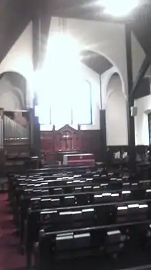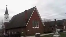 In 1855, the St. John's Zion Parish vestry received 1.5 acres along the Baltimore Pike from innkeeper John W. Brown (whose establishment was 1.25 miles south) and his wife, and the property eventually increased to about 3 acres. A frame building was then erected, and soon a cemetery. Rev. William Pinkney, then the rector of St. Matthew's Parish[6] in Hyattsville since 1836, spoke during the 1857 consecration and took care of parishioners during their first year at this location. During the American Civil War, Union artillery forces occupied the strategic site on a hill overlooking historic Route 1.[2] However, it was destroyed by fire in 1868 and rebuilt in wood, only to be again destroyed by a severe storm in 1874.
