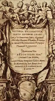 - ↑ Dempster was a Scottish Scholar and Antiquarian . He was born at Cliftbog, Aberdeenshire. Dempster’s authority has been open to serious doubt for some time. As early as 1736, William Nicholson, said of Dempster "… (he) was as well inclined to believe a lye(lie) as any man of his time…"; see, ‘Nicolson, William. 1736. The English, Scotch and Irish historical libraries. ….a general history of England (Printed for G. Strahan etc.: London,), p58. Nicholson, also criticizes Dempster’s list of "…274 saints, two popes, nine cardinals 38 kings and princes 41 apostolic missionaries…". Further recent criticism of Dempster’s authority can be found by Douglas Somerset in, "The Reforming of the Aberdeen Friaries on 4th January 1559/6"; Scottish Reformation Society Historical Journal, vol. 4 (2014), 63-95; p67.