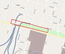 In the original St. Louis highway plan, officials intended to have an additional north-south highway connecting to I-64. The interchange is there, but the highway is not. This space will be reclaimed for development as a job center by the NorthSide project. It should have a new boundary at 22nd Street.