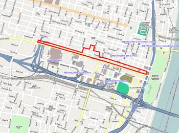 The Gateway Mall in St. Louis, Missouri is an open green space running linearly, one block wide, from the Gateway Arch at Memorial Drive to Union Station at 20th Street. Located in the city's downtown, it runs between Market Street and Chestnut Street.