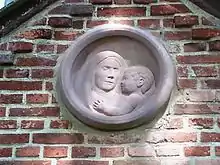 In 1684 on the occasion of the renovation of the abbey, during the term of Bailiff Lothar Feindt, an unknown donator granted a wooden putto which was later translated to the new church.[19] The offertory box is a massive oaken chest, created at the turn of the 16th and 17th century.[19] On the southern wall is a mounted sandstone epitaph for Prioress Maria von Weyhe (officiating between 1591 and 1616), translated from the old church and dating from the first half of the 17th century displaying the Weyhe family coat of arms, baroque figural allegories of Faith, Hope and Charity, reliefs of the Transfiguration of Jesus and of Jesus with the five wise virgins.[19] The altar bible, edited by Caspar Holwein and printed in 1702 in Stade, is a valuable print from the Swedish era.[31]