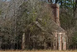 St. Mary's Episcopal Church was built in 1857 to serve approximately 20 plantation families in the remote Tunica area north of St. Francisville, Louisiana. The design is attributed to New York architect Frank Wills, a prominent 19th century proponent of the Gothic Revival. Wills' belief in the English Country church as the ideal model for American Episcopal congregations can be clearly seen in the design of St. Mary's. Two other churches by Wills are known in the region, Christ Church in Napoleonville, Louisiana and the Chapel of the Cross near Madison, Mississippi. In 1858 the church was consecrated by Bishop (later Confederate General) Leonidas Polk, the "Fighting Bishop" of Civil War fame. The church was built on the Old East Tunica Road on 5 acres donated by Sarah Mulford, The title description is written "per aversionem" so that the boundaries cannot be identified exactly. In 1928 State Highway 66 was built about 1/2 mile west of the church and the old road was abandoned, leaving the church with no vehicular access, except by private farm roads. The church was deconsecrated in 1947, and today stands empty, gradually being overtaken by the surrounding forest, which has completely overgrown the graveyard north of the church and the old roadway.