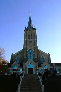 St. Mary Historic District is a national historic district located at Lafayette, Tippecanoe County, Indiana. In 1864, St. Mary's Catholic Church relocated from its original site at Fifth and Brown Streets to Columbia Street. With the move, many of the congregation also moved to this area. The Church became both a religious and social center for the neighborhood.[2] Many of the homes date from the 1860s and 1870s and include fine examples of the Italianate, Greek Revival and Queen Anne styles as well as vernacular house types. Most of the people who built in this area were Lafayette businessmen. At 1202 Columbia Street James Ball, a local wholesale grocer left his name stamped into the front steps. Across the street is the James H. Ward House, who along with his brother, William, owned a local carpet and wallpaper business.[2][3]