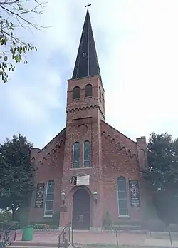 The church was established at the county seat in 1862 as a mission of St. Joseph's, Rossville, becoming the fifth Catholic church on Staten Island.[1] Prior to construction of the church, the Catholic community in the area was served by the founding pastor John Barry, a priest from Rossville, as well as by James Roosevelt Bayley, a future archbishop.[2] The early Romanesque Revival-style building was built in 1862, and a steeple was added in 1898.[2][3]