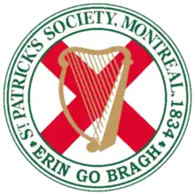 The St. Patrick's Society of Montreal (French: Société Saint-Patrick de Montréal) is the oldest fraternal organization in Canada. In existence since March 17, 1834,[1] it predates the Société Saint-Jean Baptiste by three months. The St. Patrick's Society continues to be a leader in Montreal's Irish community, organizing such annual events as the St. Patrick's Ball, the St. Patrick's Luncheon, and the St. Patrick's Society's annual Christmas concert. The Society's current President is Ken Quinn.