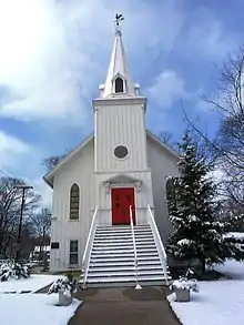 St. Paul's Episcopal Church was established in the fall 1864 by The Rev. John Miles Kendrick and the local residents. They started out meeting in the school. Over the winter they raised funds to build a church building. In May 1865, at the close of the Civil War, railroad baron and philanthropist Jay Cooke purchased the property where the church sits and contributed to the building fund. The Carpenter Gothic church was completed in October 1865. It appears to have been built from a design in the book Rural Architecture by architect Richard Upjohn. The first service was attended by the new congregation and several guests including Salmon P. Chase, Jay Cooke, and the Rev Parvin, who was the first rector of St. Paul's of Elkins Park, Pennsylvania,[2] where Jay Cooke was a vestry member.[3] Many of the churches Jay Cooke helped build in Pennsylvania, Ohio and Michigan were named for Saint Paul, which was the name of the church he attended in Philadelphia.