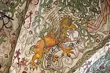 Mural depicting a griffin in Krämarkapellet. A griffin also appears on the coat of arms of Malmö.