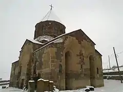 St. Thaddeus the Apostle Church of Ddmashen (Armenian: Դդմաշենի Սուրբ Թադևոս եկեղեցի; also St. Tadevos the Apostle Church) is a 7th-century Armenian church located within the village of Ddmashen in the Gegharkunik Province of Armenia.[1] Named after Saint Thaddeus the Apostle, the church is considered by some to be the fourth most important example of its style of architecture after the Cathedral of Talin, Ptghavank, and Aruchavank. Following structural damage caused by an earthquake, the drum was replaced in 1907 by a sixteen-sided one in an architectural style that was different from that of the original. Aside from the aforementioned alteration, there have not been any other major changes to the church. A large cemetery is situated south of the church, consisting mostly of unmarked grave stones. [2]